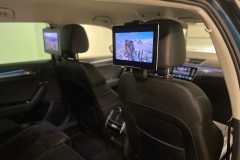 Samochód wyposażony w system rozrywki dla pasażerów podróżujących z tyłu